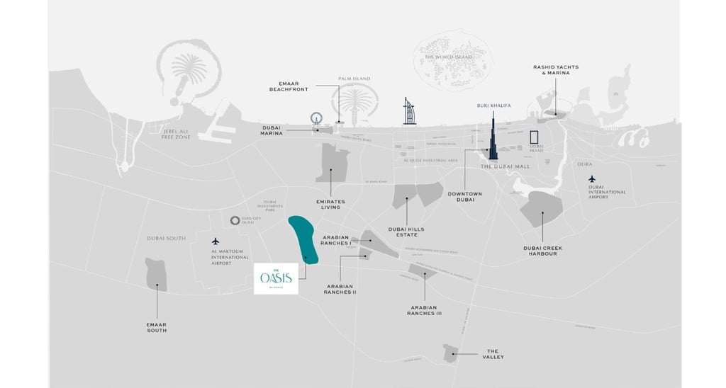 The Oasis by Emaar is a 100 million sq.ft luxury community in Dubailand, offering exclusive villas and mansions surrounded by greenery, waterways, and premium amenities. Designed by world-renowned architects, each home features spacious layouts, elegant interiors, and seamless indoor–outdoor living. Crafted for those seeking privacy, refinement, and resort-style comfort, The Oasis delivers a nature-rich, sophisticated lifestyle at every step.